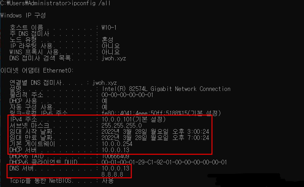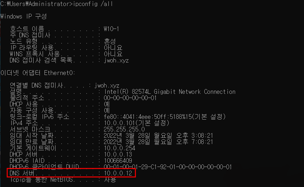 * 주 DNS가 아닌 보조 DNS로 설정이 되어있어도 확인 가능해야함