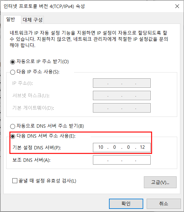 DNS 서버 주소를 보조 DNS로 변경dns 서버 설정 확인보조 dns 기본 서버 적용 확인 가능역방향 조회 가능