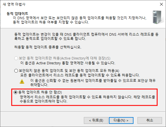 - 마스터 DNS(W2K19-AD1)에서 허가