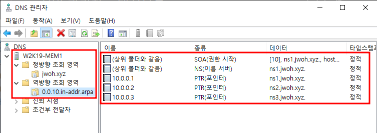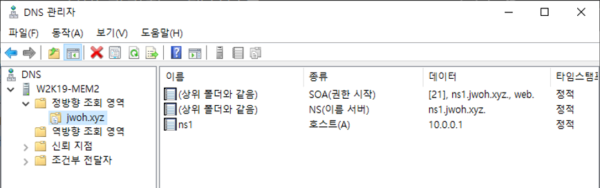 - 보조 DNS(W2K19-MEM1)에서 새로고침(F5)