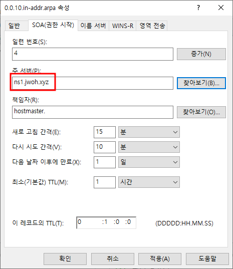 영역 파일 이름 / SOA : 보조 영역과 관련된 설정