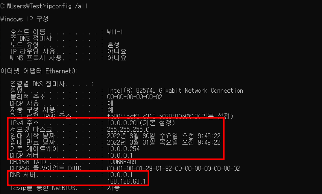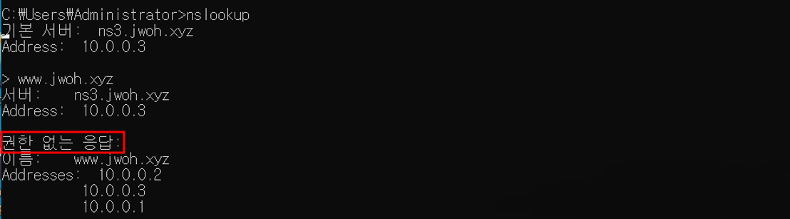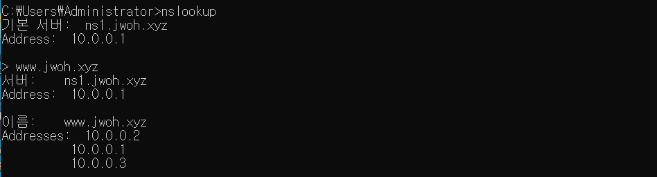 10.0.0.2 ns2 / 10.0.0.3 ns3최종 설정