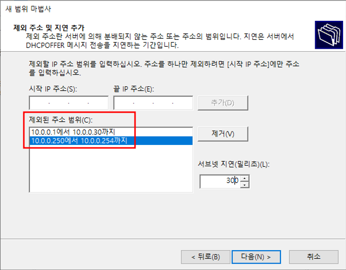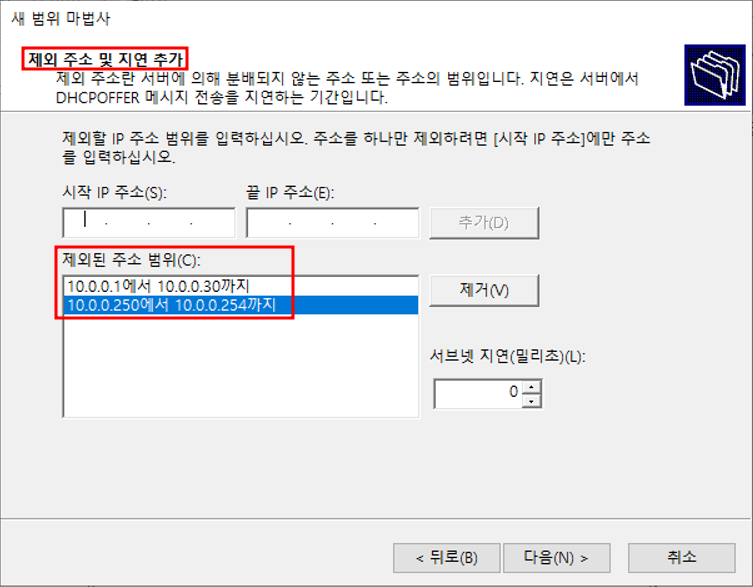 사용하는 주소 범위 작성 / 제외할 주소 추가