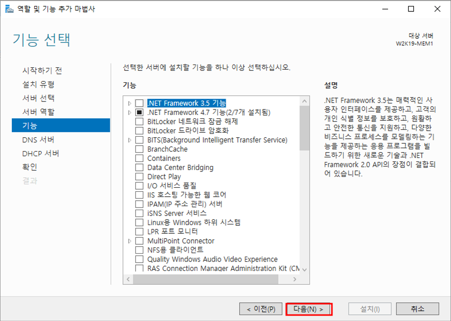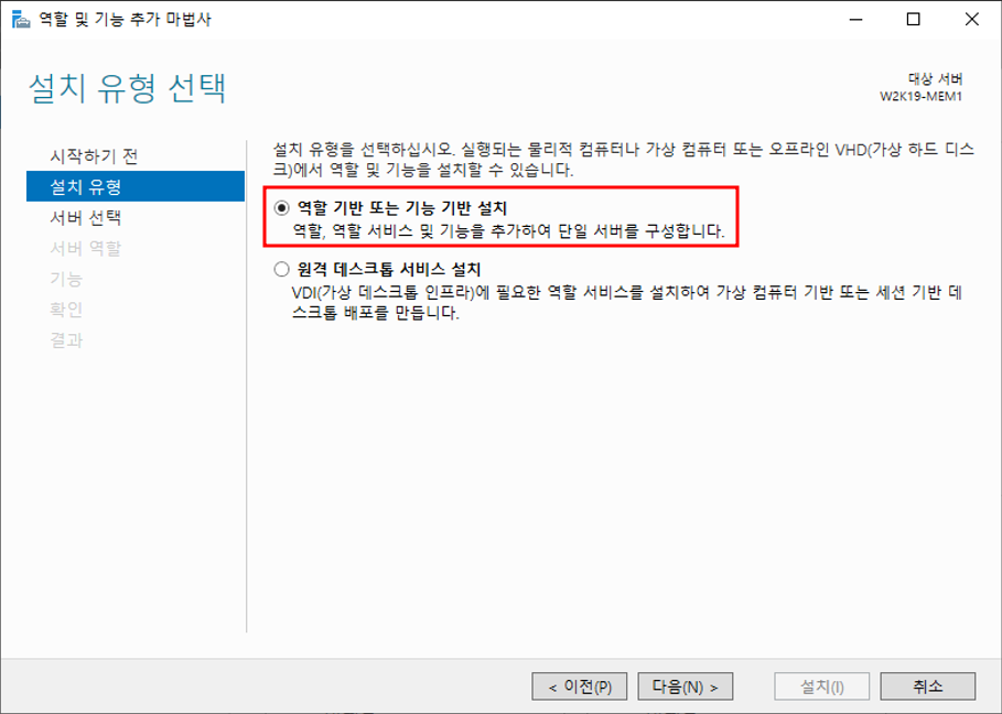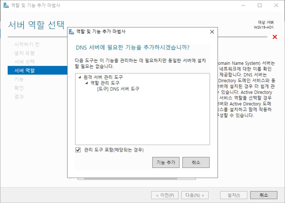 w2k19-ad1 클릭 - 제거 - 추가