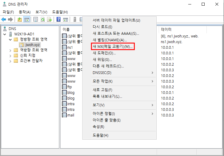 <주 DNS - W2K19-AD1>