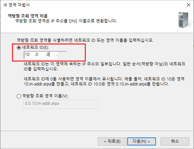 스텝 영역 / IPv4 역방향 조회 영역