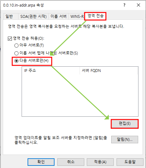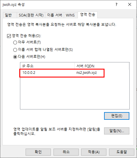 - 마스터 DNS에서 영역 전송 편집