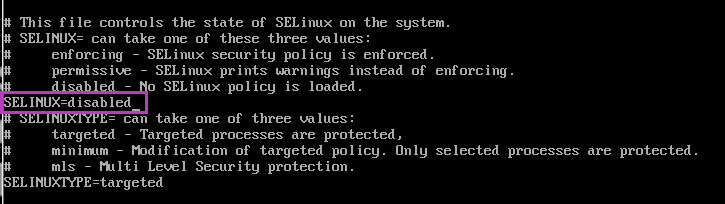 'SELINUX=disabled' 로 변경하여 selinux를 비활성화 해준다