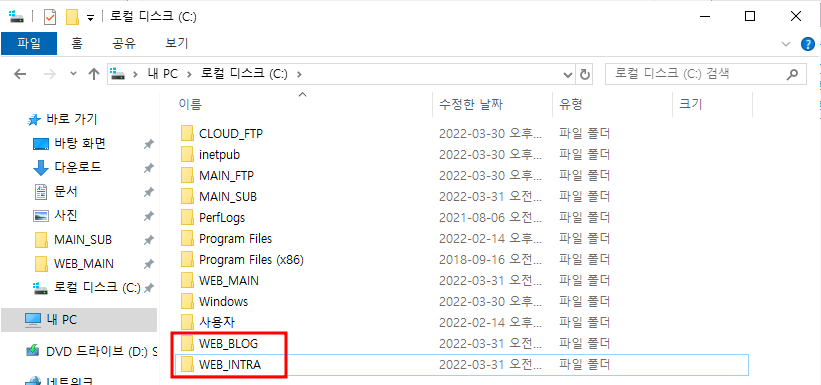 ※ 리얼 디렉토리로 생성 시 보안의 문제가 발생하기 때문에 하위 디렉토리 생성 시 가상 디렉토리로 생성해야함 ※