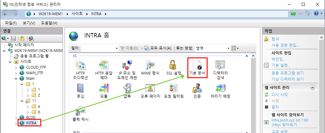 w2k19-mem1 main 시작페이지 작성