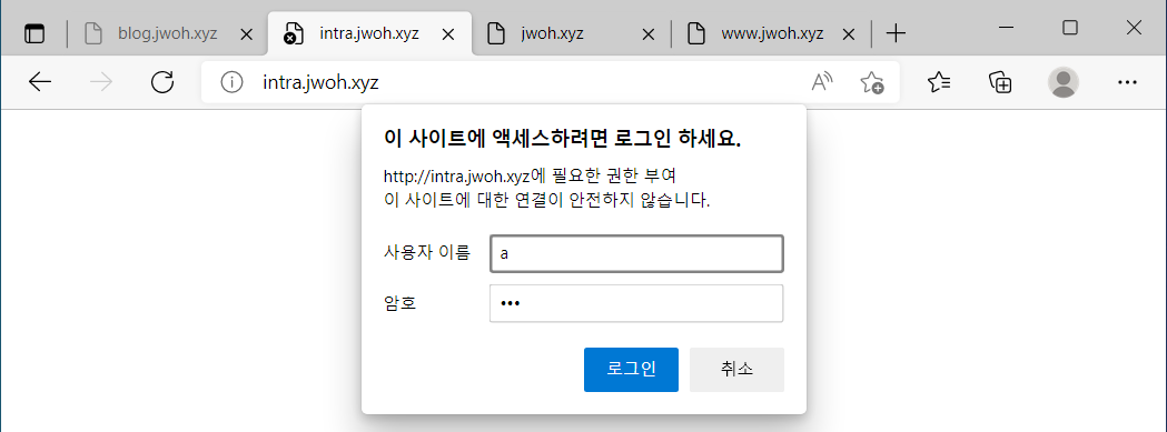 intra 페이지 접속 시 로그인 페이지 생겨남