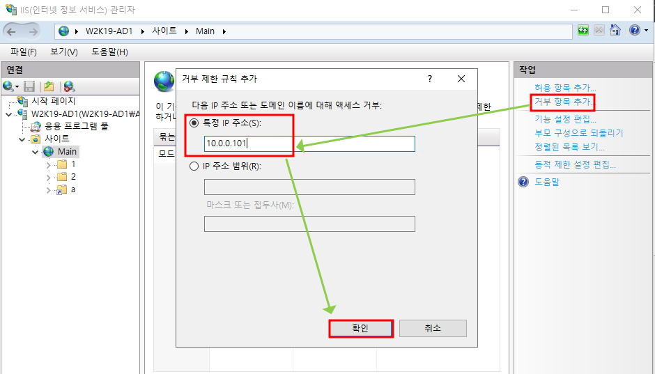 * main 페이지와 동일 IP, 동일 주소를 사용하기 때문에 호스트 이름 필수