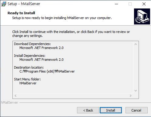 - .NET Framework 설치 완료, 대체 원본 경로 지정 후 hMailServer 설치 완료 가능