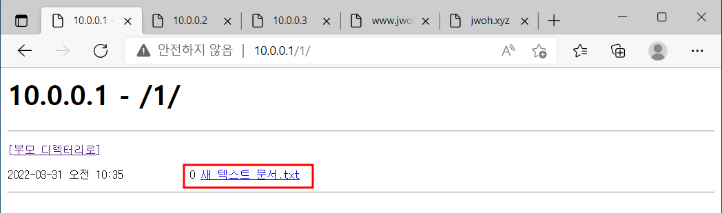 1 디렉토리 하위의 새 텍스트 문서 확인 가능 = 누구나 파일, 폴더의 경로를 알 수 있게 됨