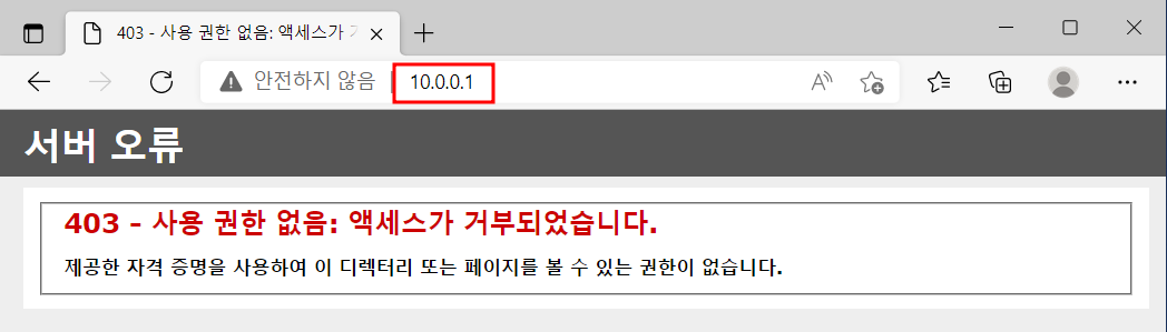 MAIN WEB 사이트에 대해 10.0.0.101 IP 거부