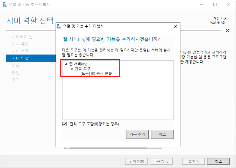 서버 관리자 - 관리 - 역할 및 기능 추가