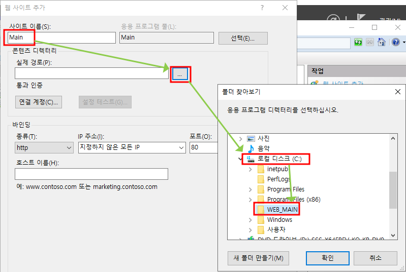 Main 우클릭 - 가상 디렉터리 추가