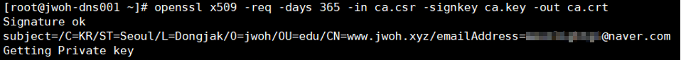 3. 개인키와 인증요청서로 인증서 생성