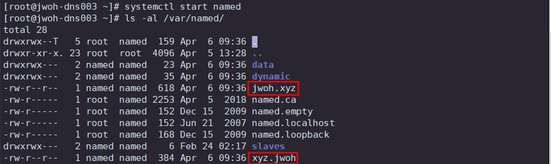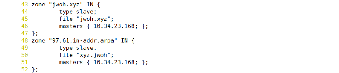 정방향 파일과 역방향 파일을 주 DNS에게서 받아옴