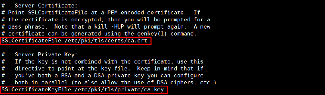mod ssl 설치설치완료ssl.conf 설정 파일 열기Document Root 경로 주석 해제인증서와 개인키 경로 수정