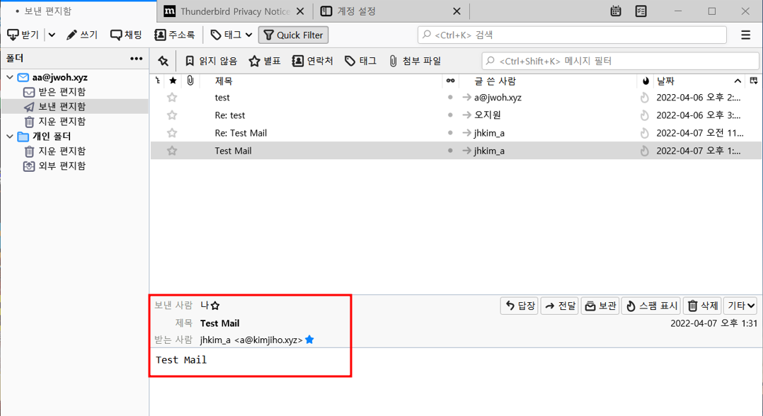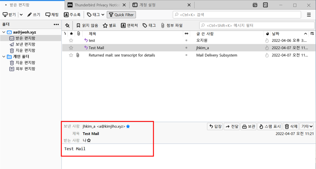 mail에 사용자 aa, bb 추가