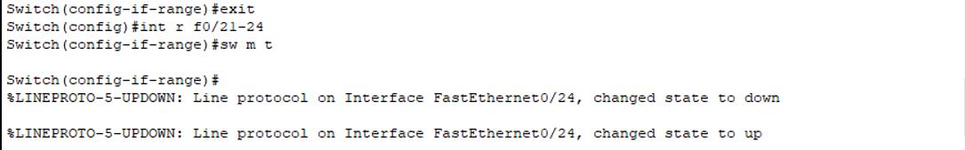 * 실습 2와 동일하게 진행하지만 L3 스위치는 Trunk mode 설정 시 에러 발생