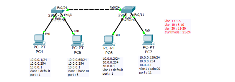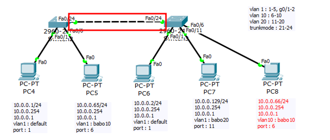 * 24번 port는 vlan 1번으로 설정되어있기 때문에 이외의 vlan이 지나갈 수 없기 때문
