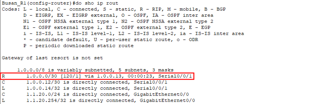 * RIP는 Classful Routing Protocol이기 때문에 Subnemask 인식 불가
