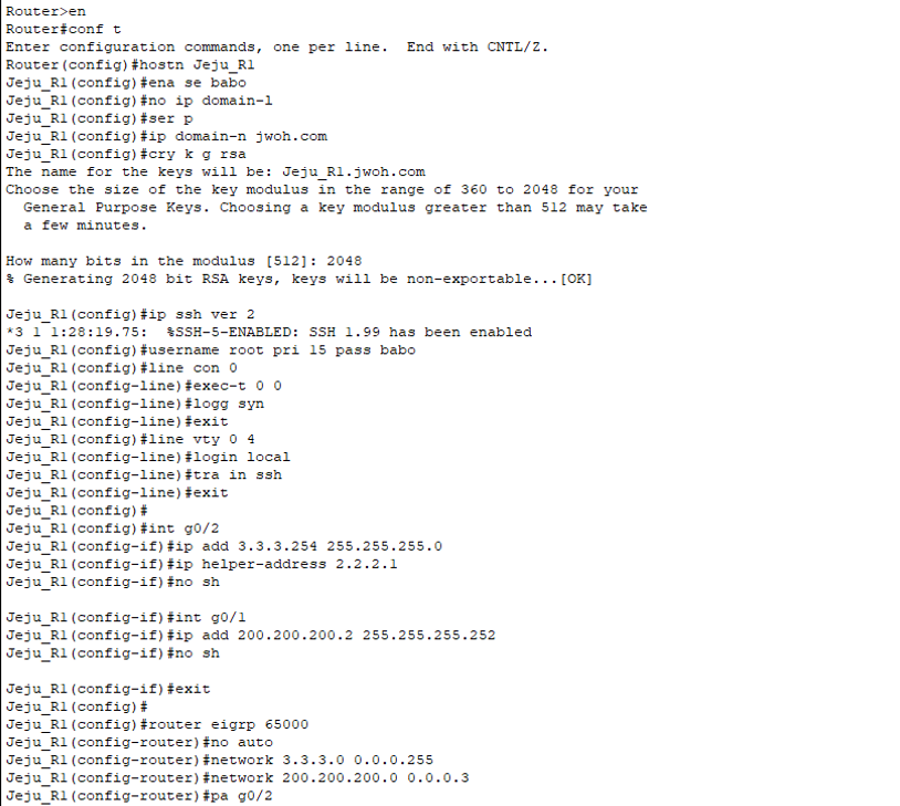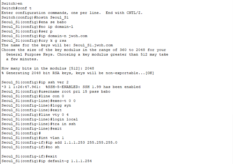 9. 라우터 및 스위치는 SSH Version 2로 설정