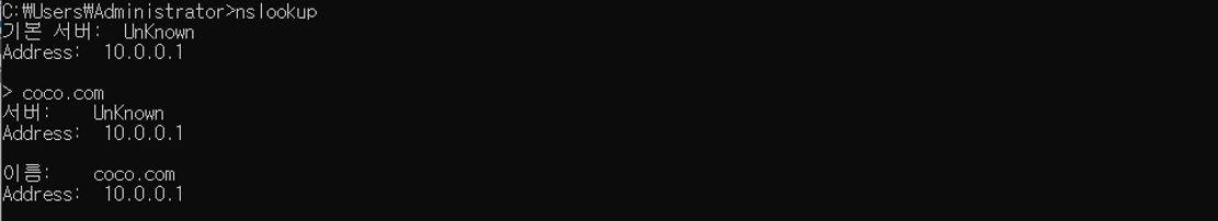 - DNS 설치 후 정상적으로 설치가 되었는지 확인