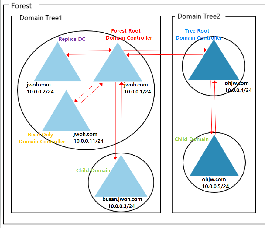 - Forest : 한 개 이상의 도메인 트리의 묶음