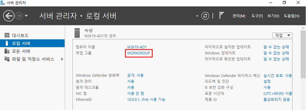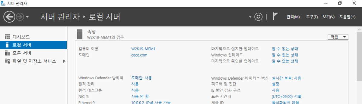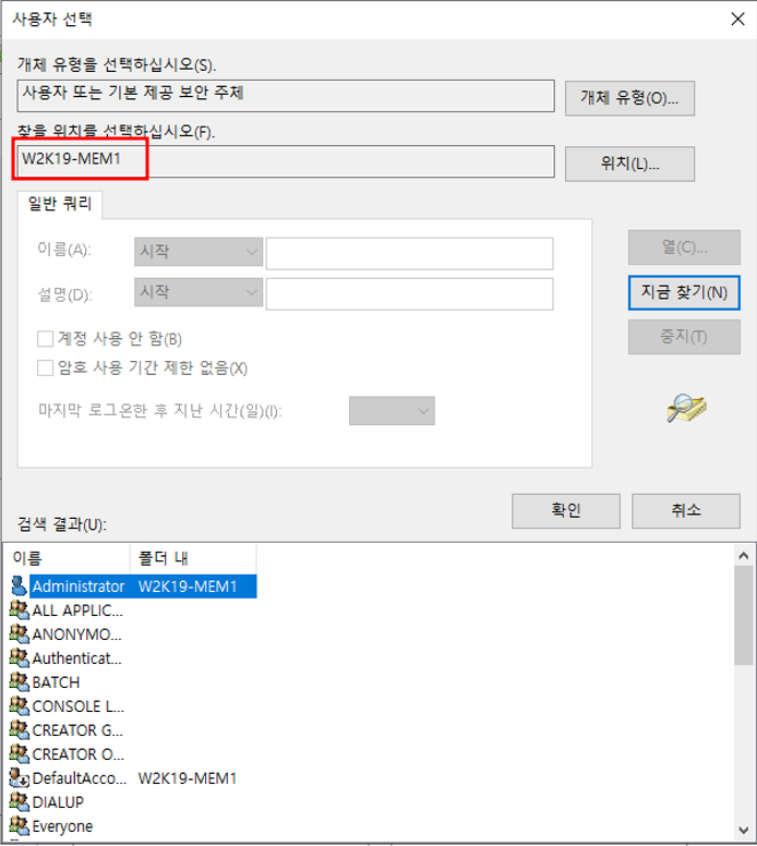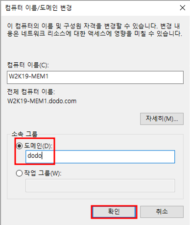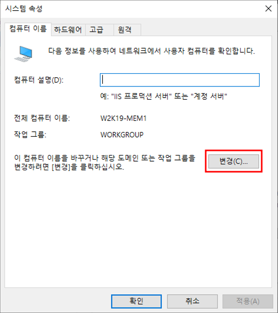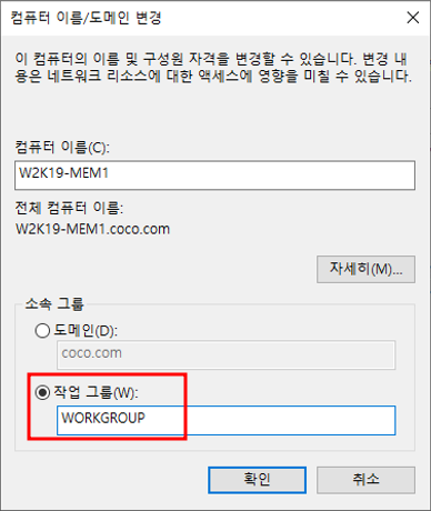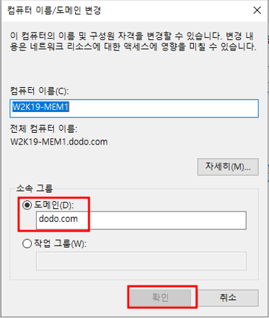 - w2k19-mem1을 도메인에 가입