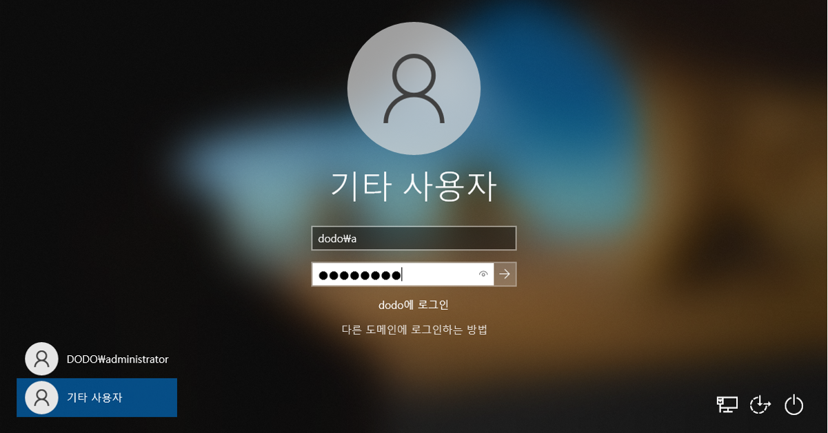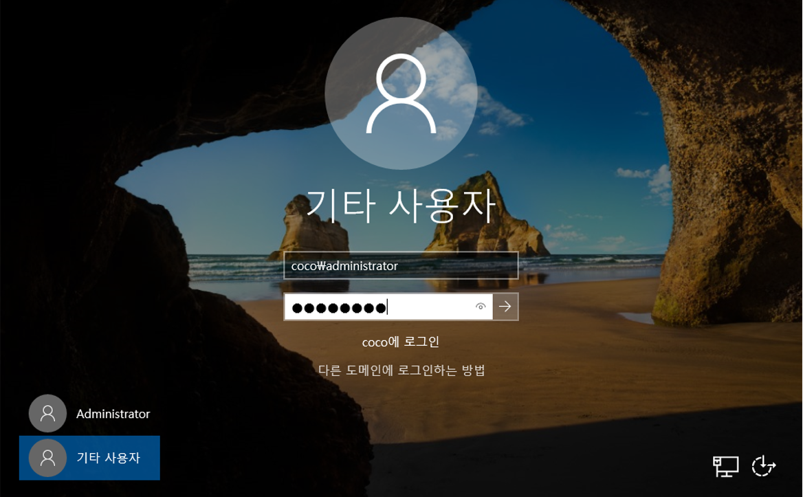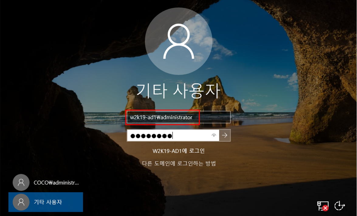 - 재부팅 후 Domain Administrator 로그인 불가