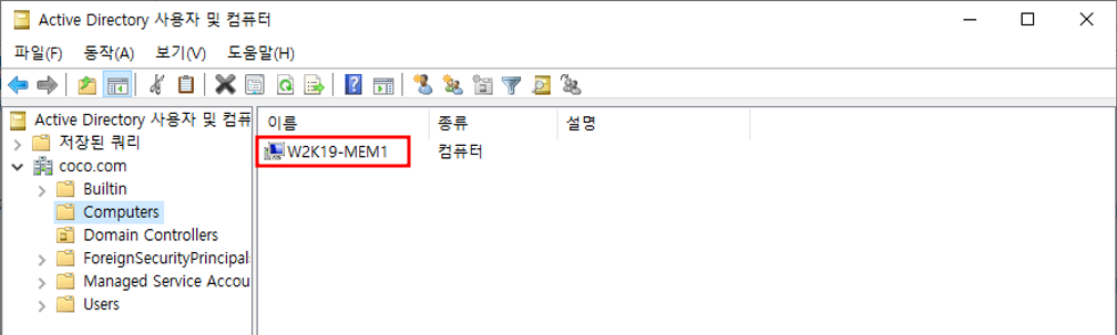 - AD 서버에서 컴퓨터 등록 확인