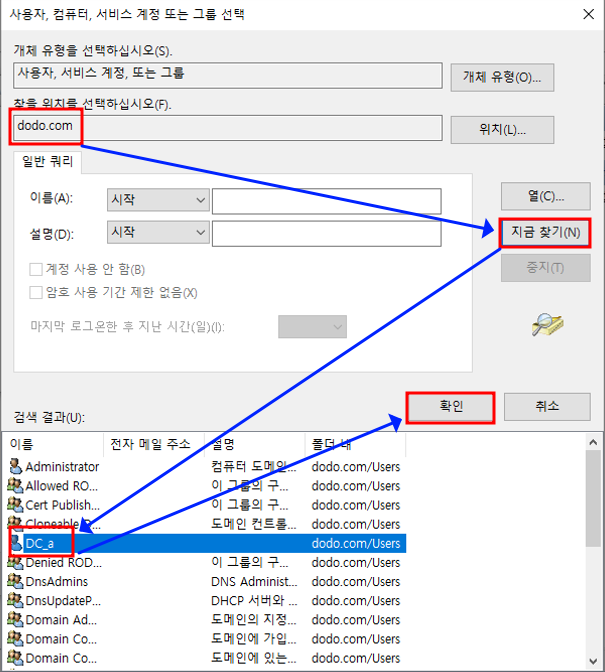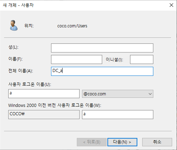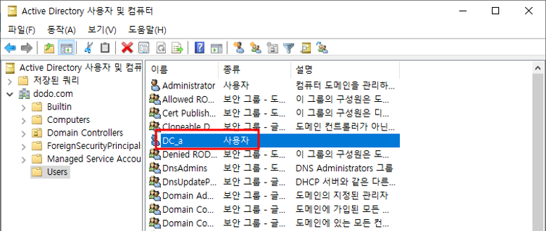 - 도메인 컨트롤러에 생성한 사용자 a