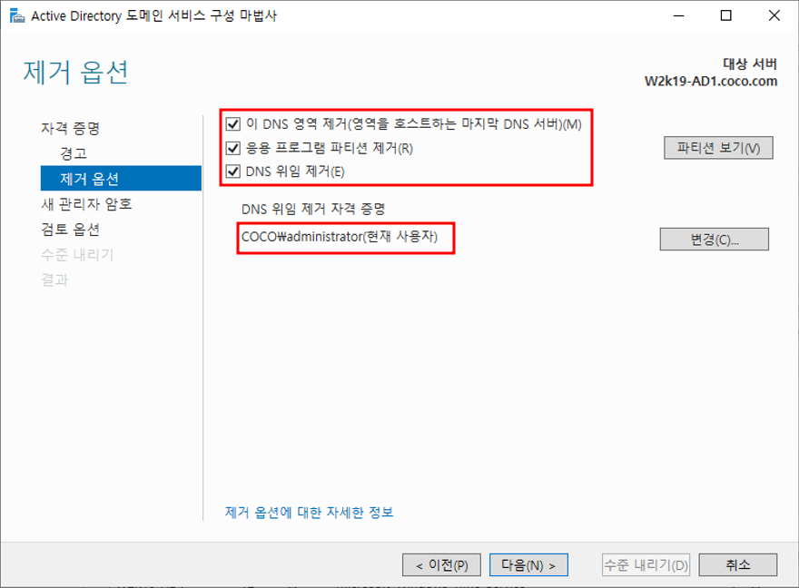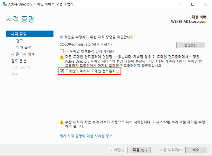 - 도메인 컨트롤러 수준 내리기