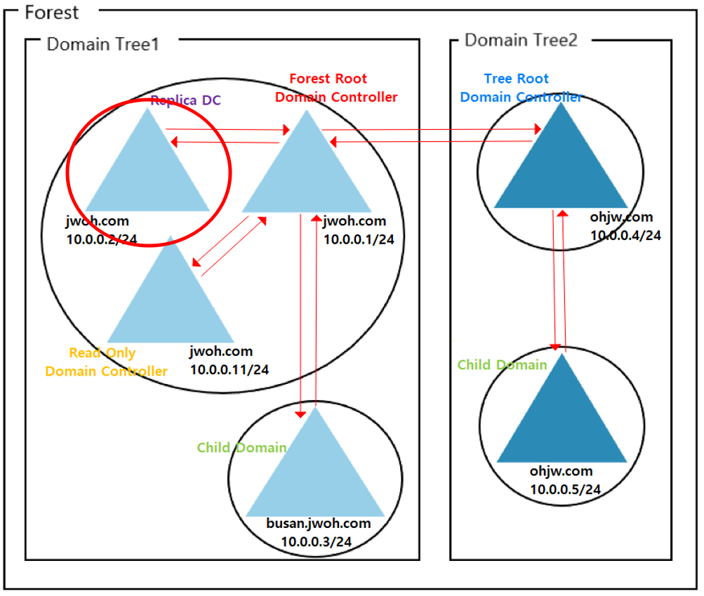 - 동일한 도메인내에서는 복수 개 이상의 도메인 컨트롤러 운영을 권장 (고장 대비, 로드 밸런싱)