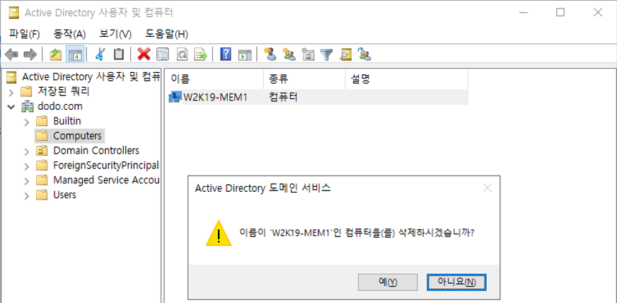7. 등록된 컴퓨터가 삭제되었을 때 Member Server 가입 방법