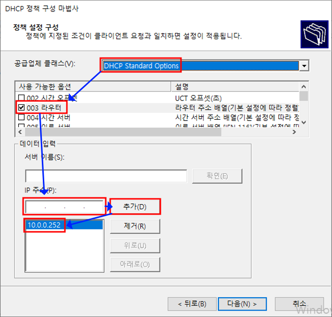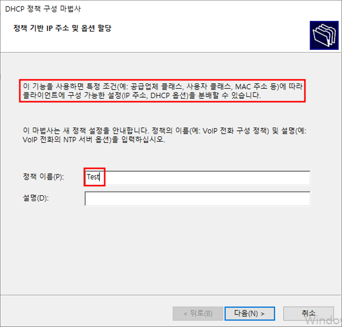 - 조건에 맞는 사용자들이 부여받을 IP 범위 설정