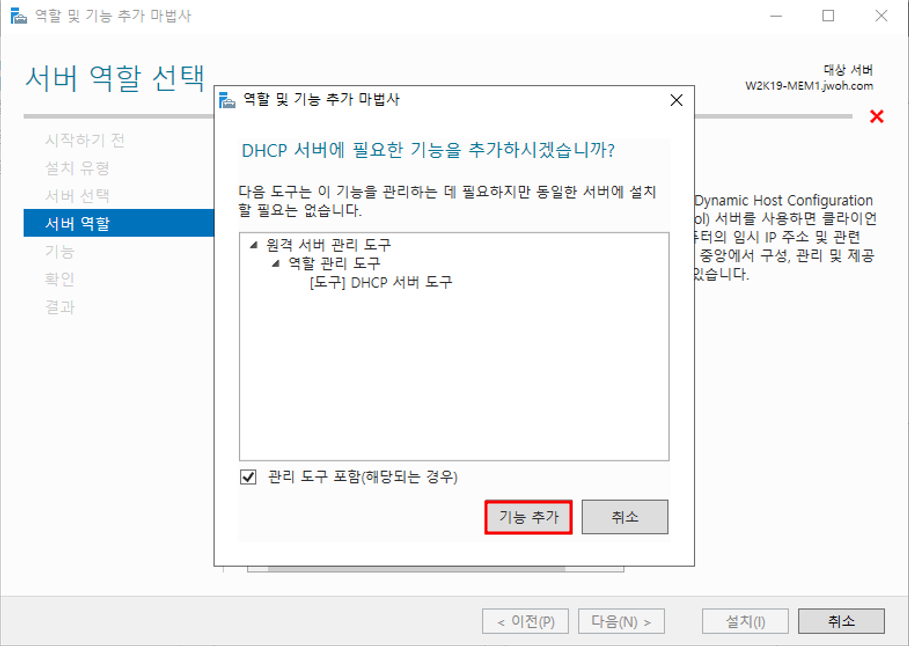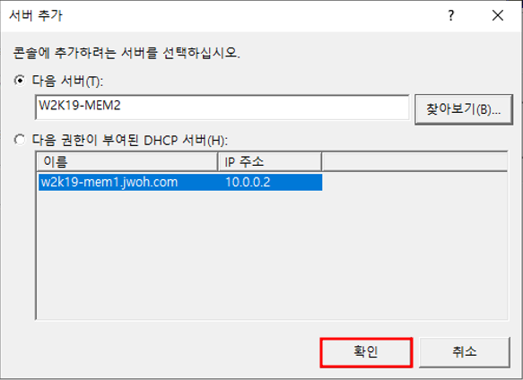 - Member Server에 DHCP 설치 (Mem1, Mem2)
