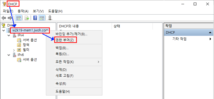 - 도메인 환경에서 DCHP가 작동하기 위해서는 DC의 허가를 받아야함