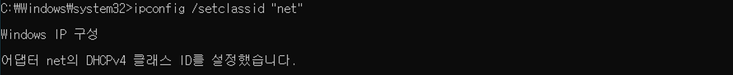 - 해제 = ipconfig /setclassid "네트워크 카드 이름"