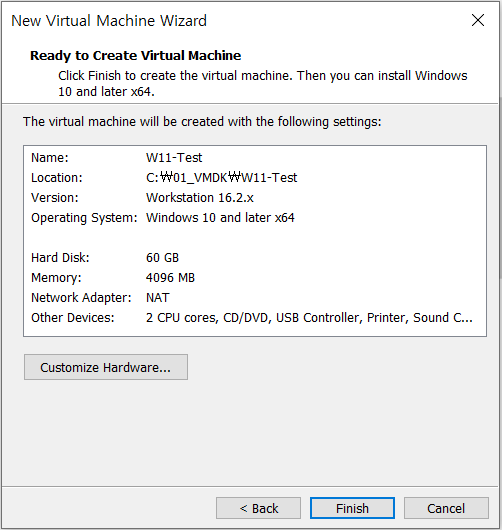 W11-Test로 이름설정을 해주고 저장 경로를 설정해줍니다.