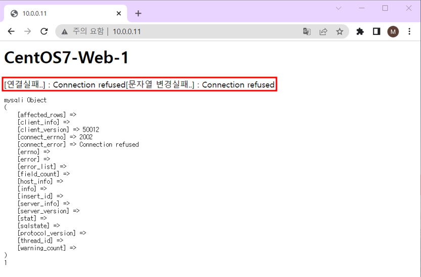 - web 페이지는 뜨지만 DB가 없기 때문에 연결 실패