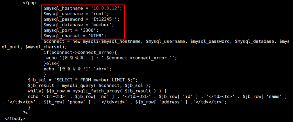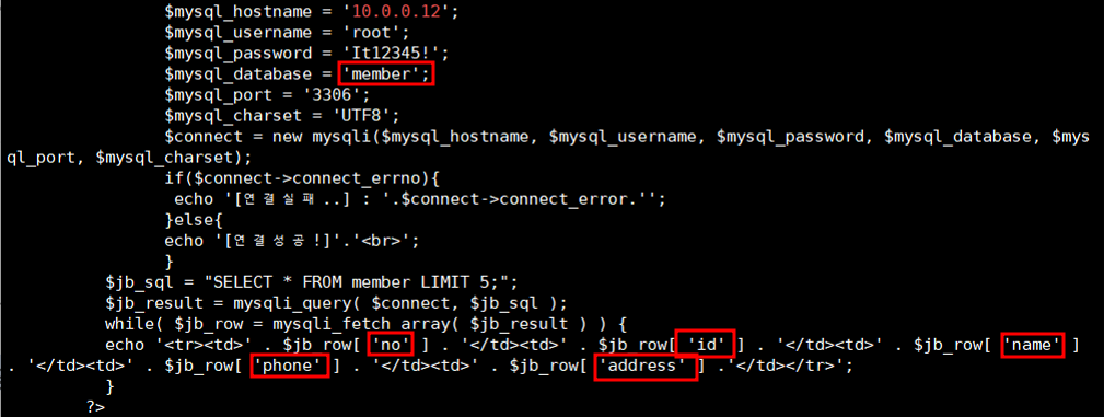 - table.php 파일에서 member DB에 필요한 칼럼 확인