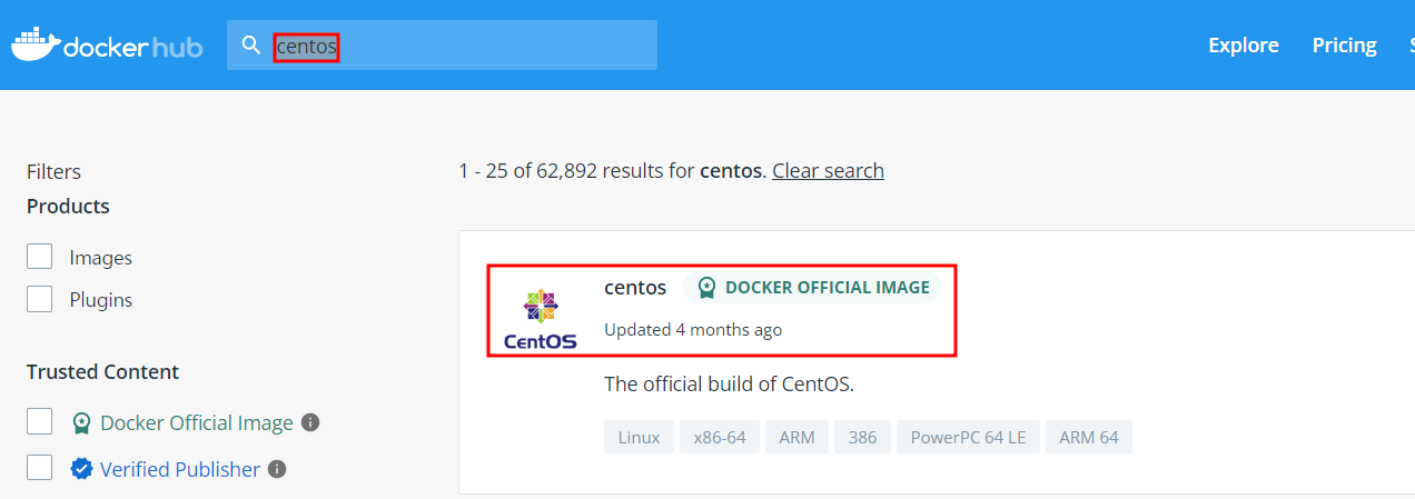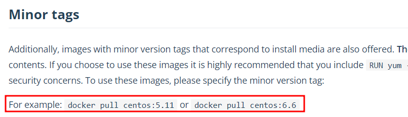 * centos 검색 시 버전이 나오지 않기 때문에 docker hub에서 확인 필요