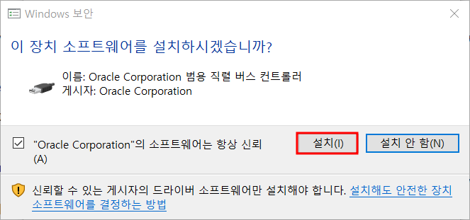 - Extension Pack을 설치해야 usb 인식 가능