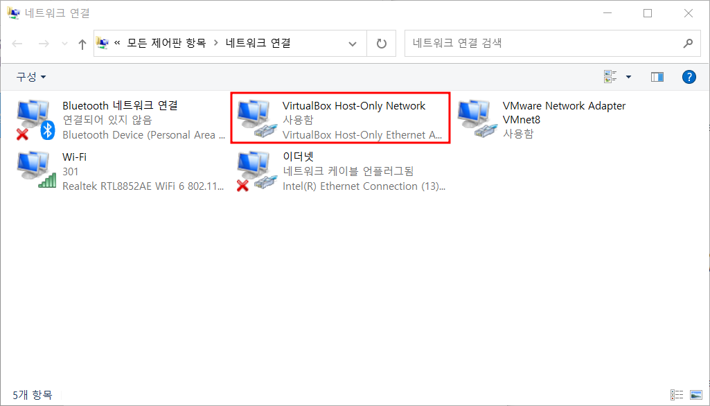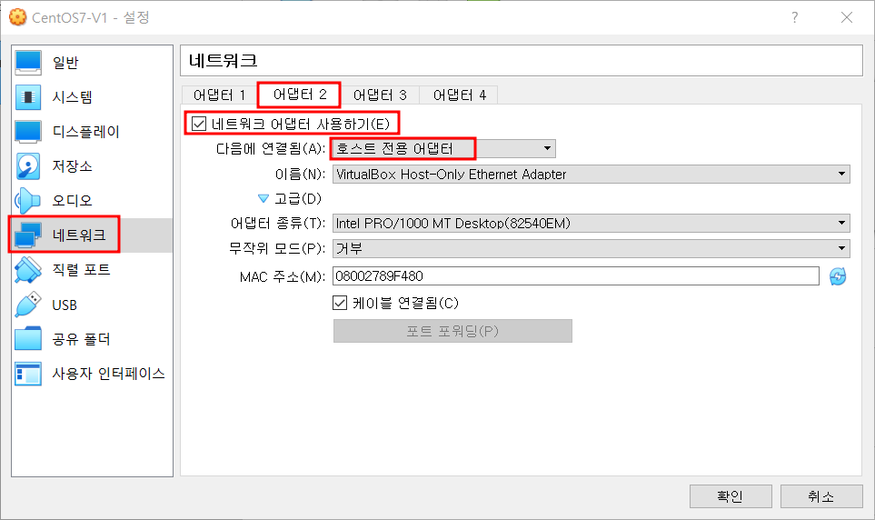 - VirtualBox는 실제 PC와 통신하기 위해 네트워크 카드가 추가 됨