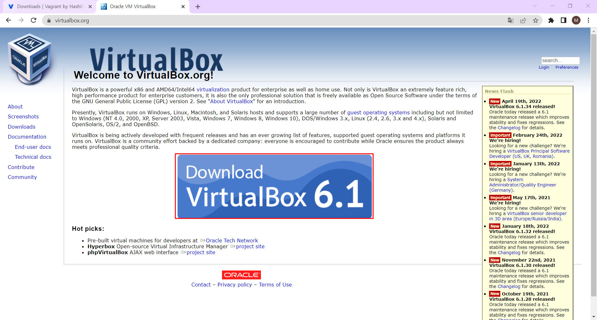 Welcome to VirtualBox.org! News Flash New April 19th, 2022VirtualBox 6.1.34 released! Oracle today released a 6.1 maintenance release which improves stability and fixes regressions. See the Changelog for details. Important February 24th, 2022We're hiring!