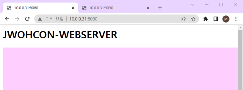 - 새로고침 시 두개의 서버가 부하 분산을 통해 서비스 됨